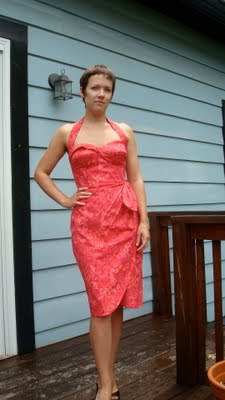 I got the skirt worked out pretty quickly and got the body of the dress together and took a couple of pictures before I went to bed that night to see how it was going to look with the halter strap attached.